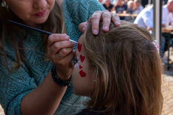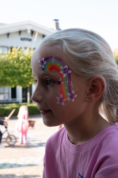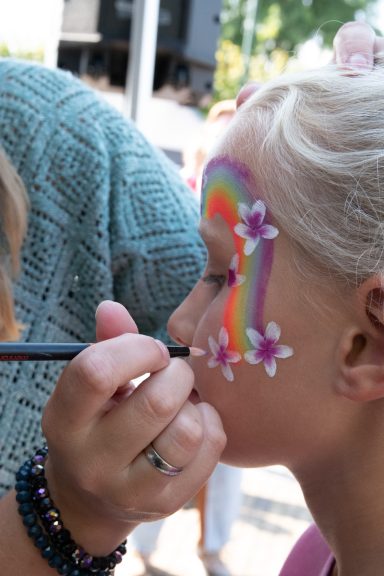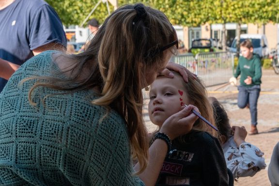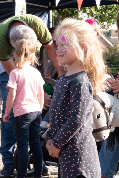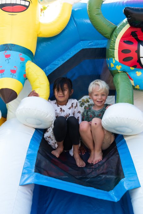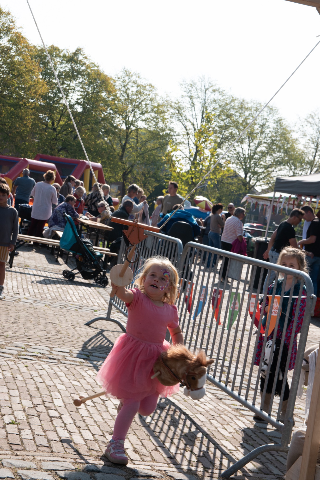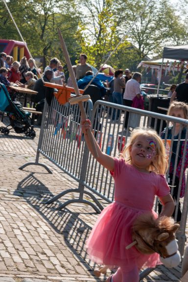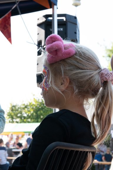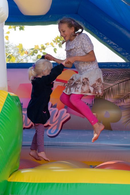 Voor de kinderen was er ook genoeg vertier. Springkussens, ringrijden, schminken en lekker spelen in de speeltuin. En dat alles prachtig muzikaal omlijst door Lara en Marijn. Voor ieder wat wils.