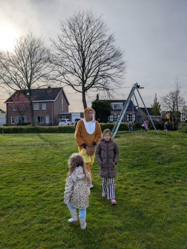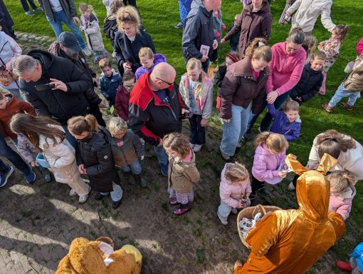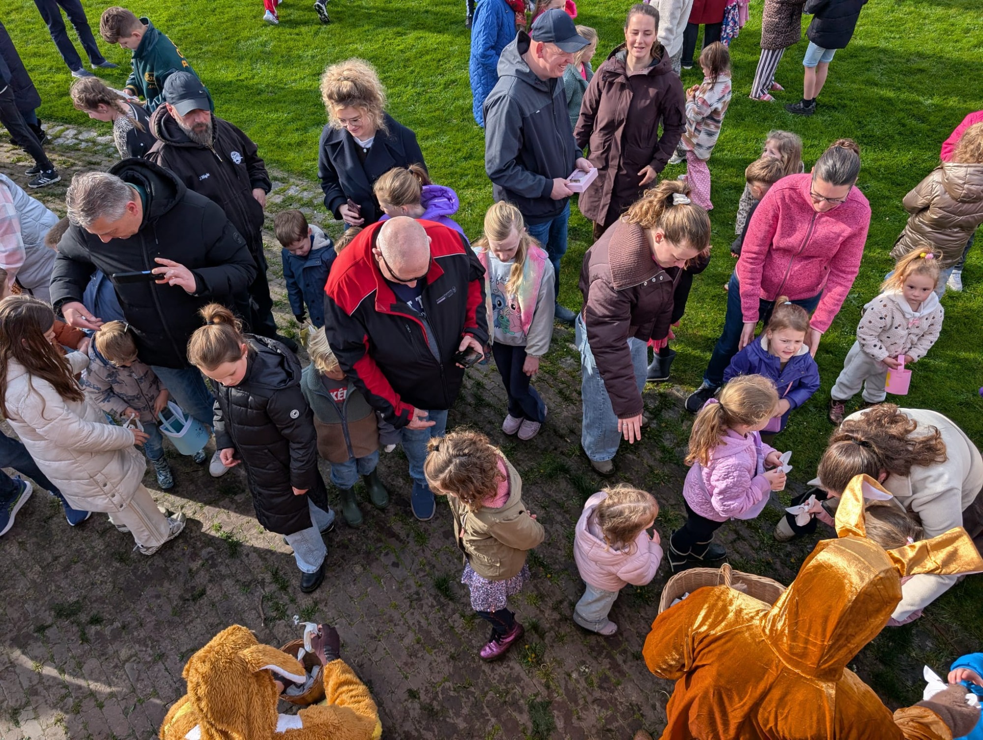 Een kleine impressie van Ei op het plein 2026. Ongeveer 87 kinderen hebben de Paashaa geholpen met het terug vinden van zijn eieren.